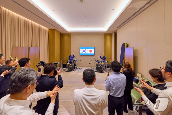 청와대는 13일 한일 정상회담과 관련해 "다카이치 총리가 이재명 대통령에게 드럼 스틱을 선물하고, 즉석에서 드럼 연주 방법을 직접 설명하며 합주를 이끌었다"고 밝혔다.
