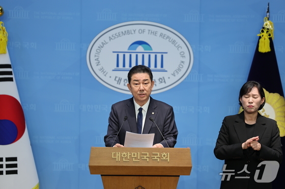 김병기 더불어민주당 의원이 19일 서울 여의도 국회 소통관에서 당 윤리심판원의 제명 결정에 대한 입장을 밝히는 기자회견을 하고 있다. 2026.1.19/뉴스1 © News1 이승배 기자