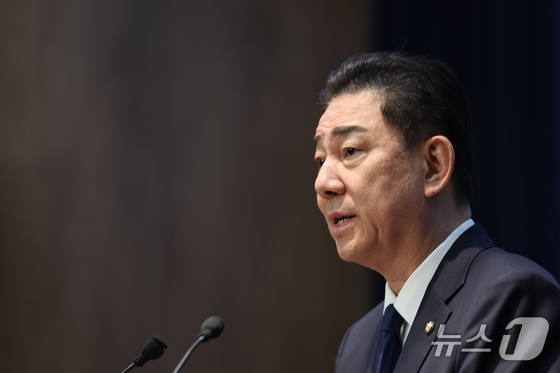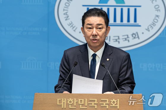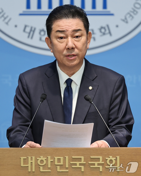 김병기 더불어민주당 의원이 19일 서울 여의도 국회 소통관에서 당 윤리심판원의 제명 결정에 대한 입장을 밝히는 기자회견을 하고 있다. 2025.1.19/뉴스1 © News1 이승배 기자