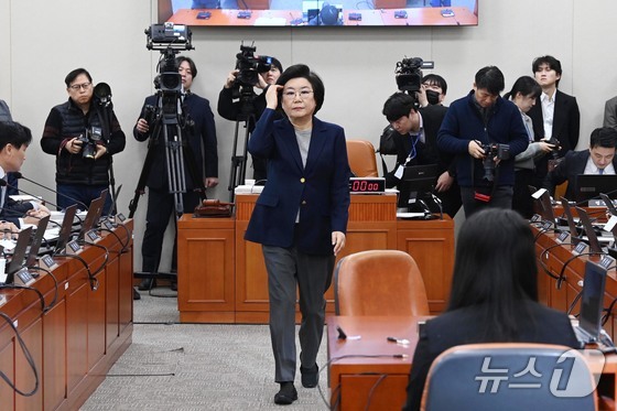 이혜훈 기획예산처 장관 후보자가 23일 서울 여의도 국회에서 열린 제431회국회(임시회) 재정경제기획위원회 인사청문회에 출석해 선서문을 임이자 위원장에게 전달한 뒤 자리로 돌아가고 있다. 2026.1.23/뉴스1 © News1 국회사진기자단