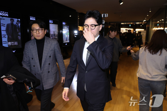 한동훈 전 국민의힘 대표가 지난 28일 서울 영등포구의 한 영화관에서 ‘잊혀진 대통령: 김영삼의 개혁시대’를 관람울 엎듁ㅎ 있다. © News1 송원영 기자