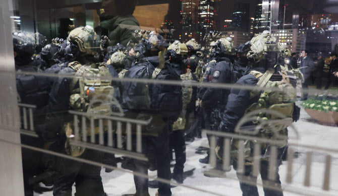 2024년 12월 3일 밤 비상계엄 선포 이후 서울 영등포구 여의도 국회의사당 본관으로 특전사 요원들이 진입 준비를 하고 있다. (사진=연합뉴스)