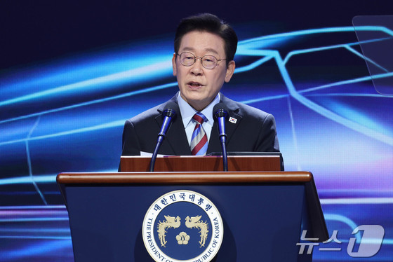 이재명 대통령이 6일 경남 거제시 견내량 인근에서 열린 남부내륙철도 착공식에서 기념사를 하고 있다. 2026.2.6 / © 뉴스1 이재명 기자