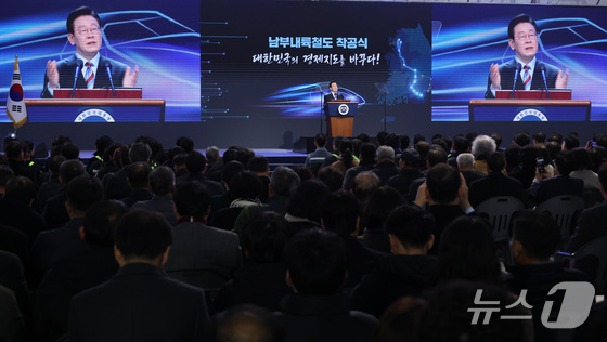 이재명 대통령이 6일 경남 거제시 견내량 인근에서 열린 남부내륙철도 착공식에 참석해 남부내륙철도는 단순히 선로 하나를 놓는 사업이 아니다"라며 "수도권에 모든 것이 집중된 '일극 체제'에서 벗어나 사람과 지역을 잇고, 기회를 연결하며, 지역의 성장동력을 만들어내는 국토 대전환의 시작"이라고 말했다.