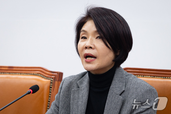 한정애 더불어민주당 정책위의장이 10일 서울 여의도 국회에서 열린 원내대책회의에서 모두 발언을 하고 있다. 2026.2.10 © 뉴스1 유승관 기자