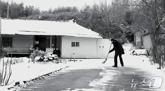 장동혁 대표가 95세 노모가 살고 있는 충남 보령의 단독 주택 앞 눈을 치우고 있다. (장 대표 페이스북)