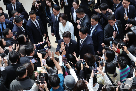 이재명 대통령과 김혜경 여사가 26일 서울 용산구 국립중앙박물관에서 열린 특별전 '우리들의 이순신'을 관람한 뒤 시민들과 인사를 나누고 있다. 2026.2.26 © 뉴스1 허경 기자