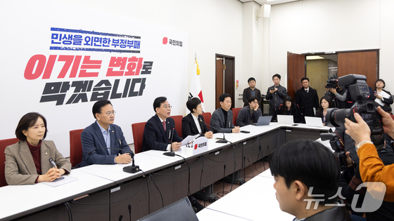 송언석 국민의힘 대표가 27일 서울 여의도 국회에서 열린 기자간담회에서 발언하고 있다. 2026.2.27 © 뉴스1 이승배 기자