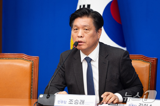 조승래 더불어민주당 중앙당 공천관리부위원장(사무총장)이 27일 서울 여의도 국회에서 김이수 공천관리위원장의 1차 공천 심사 결과발표 이후 취재진 질문에 답하고 있다. 더불어민주당 중앙당 공천관리위원회는 이날 6.3 지방선거 1호 공천으로 강원특별자치도지사 후보에 우상호 전 청와대 정무수석을 단수공천한다고 밝혔다. 2026.2.27 © 뉴스1 유승관 기자