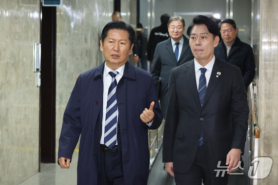 정청래 더불어민주당 대표가 지난 1일 서울 여의도 국회에서 열린 의원총회에 참석하고 있다. 2026.3.1 © 뉴스1 신웅수 기자