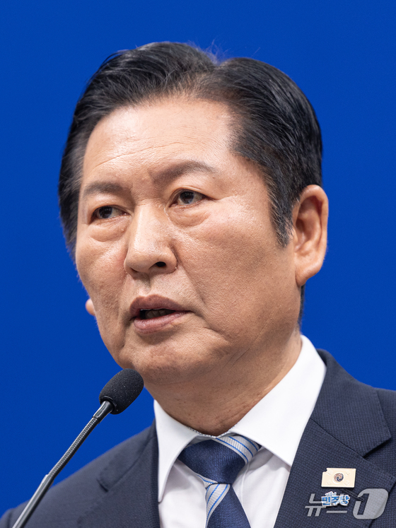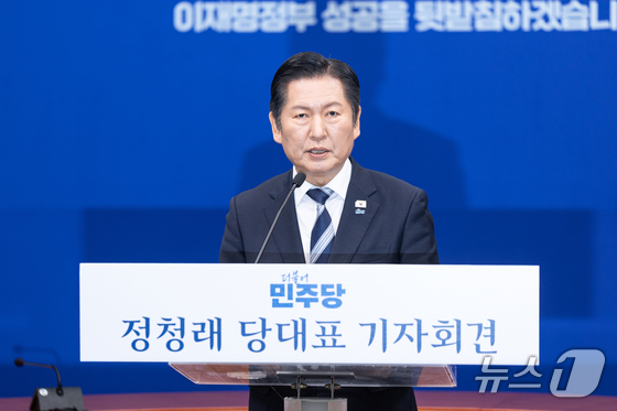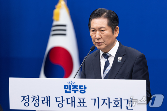 정청래 더불어민주당 대표가 8일 서울 여의도 국회에서 취임 후 두 번째 기자회견을 하고 있다. 2026.3.8 © 뉴스1 이승배 기자