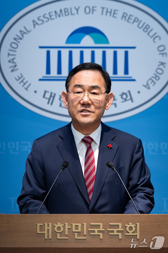 주호영 국민의힘 의원이 26일 서울 여의도 국회 소통관에서 당 공천관리위원회의 대구시장 경선 공천 배제(컷오프)와 관련해 기자회견을 하고 있다. 2026.3.26 © 뉴스1 유승관 기자