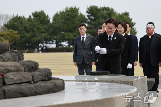 한편 이 대통령은 제주도 방문에 앞서 자신의 엑스(X·구 트위터)를 통해 "오늘 최악의 국가폭력 사건인 제주 4·3 참배를 갑니다"라며 "영문도 모른 채 이유 없이 죽창에 찔리고 카빈총에 맞고 생매장당해 죽은 원혼들의 명복을 빕니다"라고 했다.