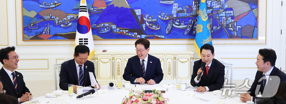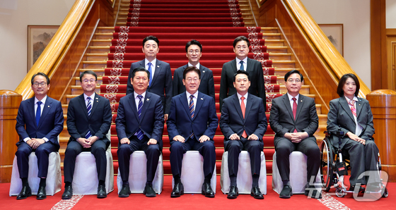 이재명 대통령은 7일 여야 지도부와 만나 "지금처럼 어려운 시기, 특히 외부 요인에 의해 우리 공동체가 위기에 처해 있을 때는 내부적 단합이 정말 중요하다"라며 초당적 협력을 당부했다.