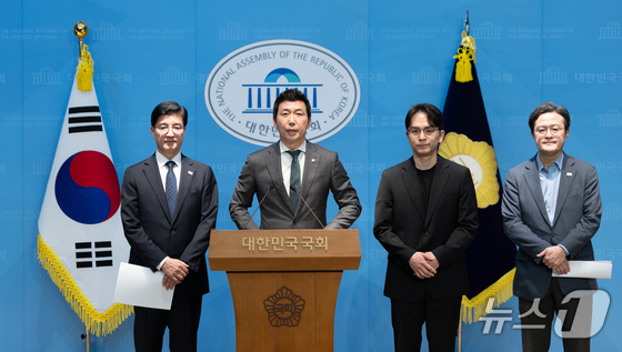 이정헌 더불어민주당 의원이 20일 서울 여의도 국회 소통관에서 정원오 서울시장 후보 캠프 선거대책위원회 명단을 발표하고 있다. 2026.4.20 © 뉴스1 이승배 기자