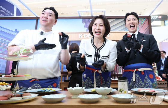 김 여사는 정일우와 약과를 시식하고 드라마 '폭군의 셰프'에 나왔던 고추장 버터 비빔밥, 마카롱을 만드는 시연 행사에 참여다.