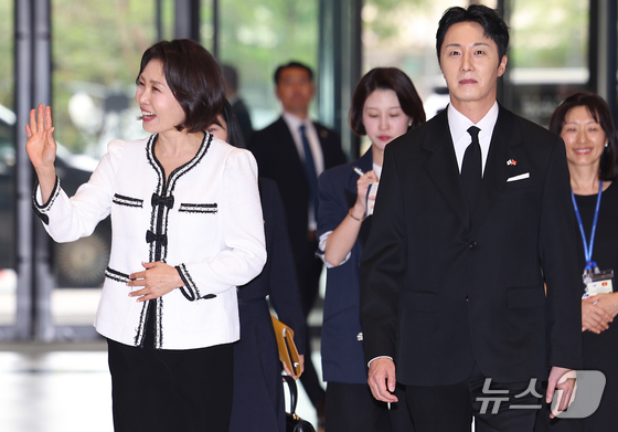 이재명 대통령과 베트남을 국빈 방문 중인 김혜경 여사가 23일(현지시간) 하노이 롯데몰에서 열린 K문화관광대전에서 배우 정일우와 입장하고 있다. 2026.4.23 © 뉴스1 이재명 기자