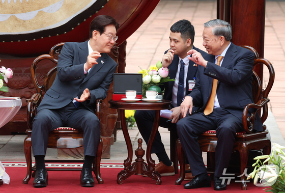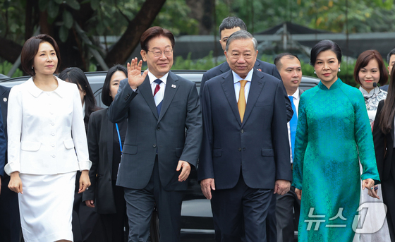 베트남을 국빈 방문 중인 이재명 대통령과 김혜경 여사가 24일(현지시간) 또 럼 베트남 공산당 서기장 겸 국가주석 부부와 마지막 공식일정으로 친교의 시간을 가졌다.