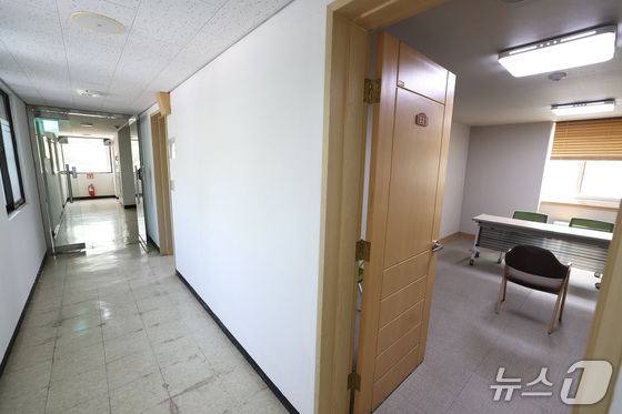 정부과천청사 국가고시센터 내부의 모습이다. 위원들이 합숙 출제를 하는 곳으로, 국가보안시설 '다'급에 해당한다. 외부를 볼 수 없을 만큼 건물 내 창문 전체가 다 반투명지로 붙어져 있고, 자물쇠로 잠겨 있을 만큼 보안이 엄격하다. (인사혁신처 제공. 재판매 및 DB금지)