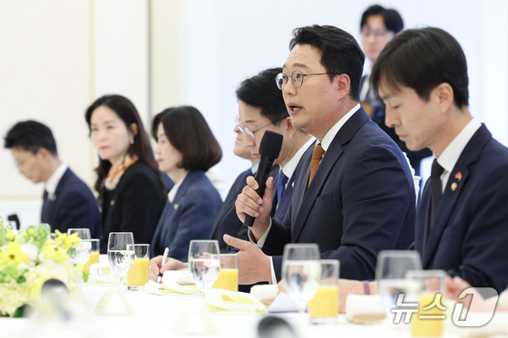 천하람 개혁신당 원내대표가 29일 청와대에서 열린 비교섭단체 및 무소속 국회의원 초청 오찬 간담회에서 발언을 하고 있다. (청와대통신사진기자단) 2026.4.29 © 뉴스1 이재명 기자