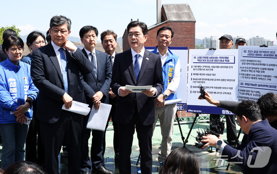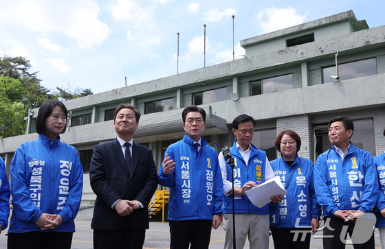 정원오 더불어민주당 서울시장 후보가 29일 오전 서울 성북구 장위14 주택 재개발 구역을 찾아 부동산 공약을 발표하고 있다. 2026.4.29 © 뉴스1 최지환 기자
