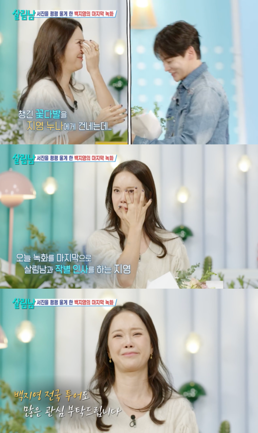 박서진은 녹화가 끝나자 테이블 아래에서 꽃다발을 꺼냈고, 백지영은 놀라서 눈물을 터뜨렸다. 은지원은 “나의 짝꿍이자 ‘살림남’의 안방마님인 백지영 씨가 오늘 녹화를 마지막으로 시청자 곁을 떠난다. 여러분들 많이 아쉬울 것 같다”고 했다.