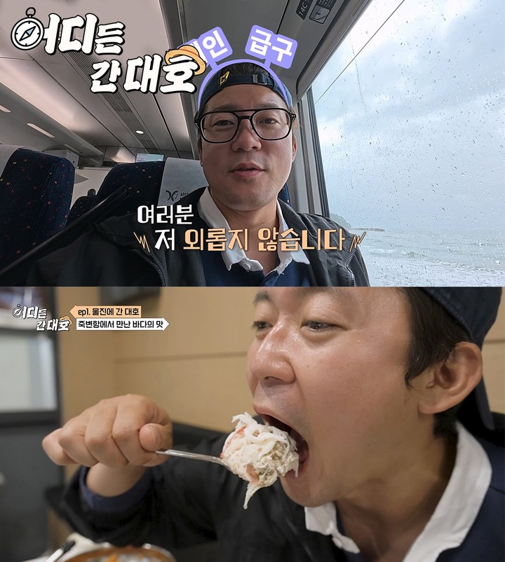 특히 첫 이야기인 울진 편에서는 부슬비 내리는 가을날 강릉에서 기차를 타고 바닷가를 달려 울진에 도착한 김대호 아나운서의 여행기가 펼쳐진다. 울진의 성류굴에 도착해 떨어지는 물을 받아먹는 기행을 선보이기도 하고, 보기만 해도 군침이 고이는 먹방도 선보인다.