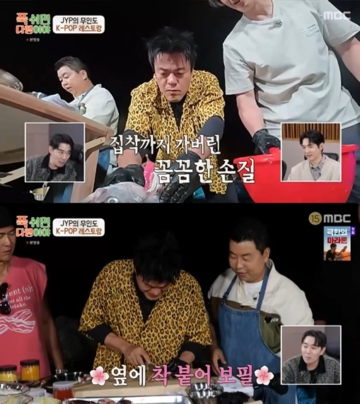 지난 방송에서 “요리를 한 번도 안 해봤다”고 고백했던 박진영은 이번에는 직접 칼을 잡고 생선 비늘 손질부터 웍질까지 도전해 깔끔하게 해냈다. 이를 지켜보던 안정환은 “박진영이 요리에 빠진 것 같다. 이제 집에서도 요리할 것”이라고 감탄했다.