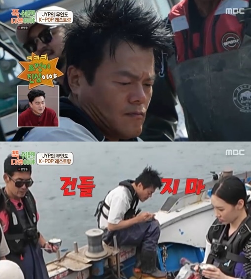 또한 박진영은 다리가 풀려 휘청이면서도, “조업이 재밌다”라면서 조업에 완전히 몰입했다. 이어 선장님이 즉석에서 썰어준 강담돔과 광어회를 맛본 그는 “설명하면 죄가 되는 맛”이라며 눈을 감고 감탄했다. 이에 더해 쥐치 간부터 강담돔, 광어, 쥐치를 모두 넣은 생선조림까지 맛본 박진영은 “꿈꿨던 것 이상”이라며 행복해했다.