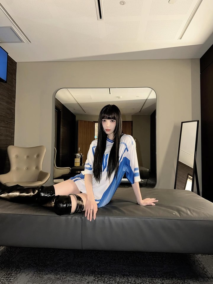 지난 17일 미나는 자신의 SNS에 별다른 멘트 없이 여러 장의 사진을 게재했다. 공개된 사진 속 미나는 침대 위에서 롱부츠를 신은 모습으로, 블루·화이트 오버사이즈 져지에 롱부츠를 매치해 스포티한 스타일링을 완성했다.