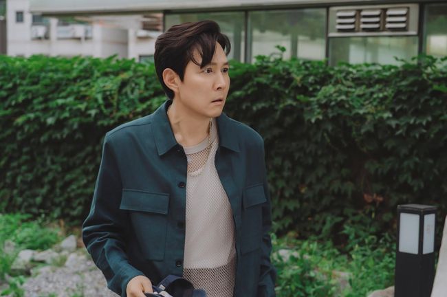 이정재가 맡은 '임현준'은 '착한형사 강필구'로 국민 배우 반열에 올랐지만, '강필구'라는 배역명에 갇혀 새로운 도약을 꿈꾸는 톱스타다. 연예부 기자 위정신(임지연 분)과의 불꽃 튀는 디스 전쟁을 통해 유쾌하고 발랄한 매력을 폭발시키고 있다.