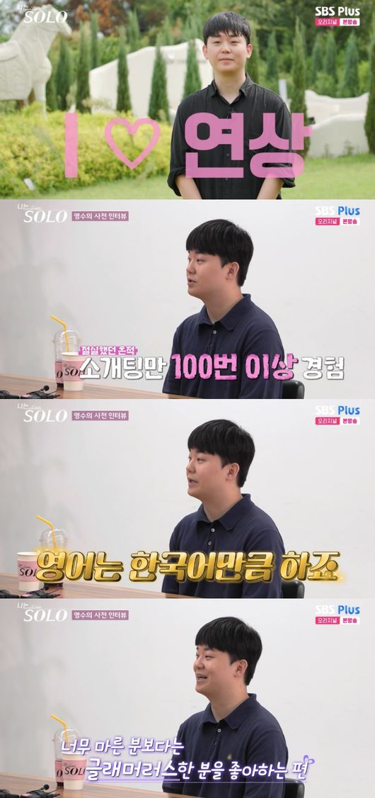 이날 첫 번째 연하남으로 영수가 등장했다. 인터뷰에서 영수는 “저는 약간 비유를 하자면 사골곰탕 같은 사람이다. 우려낼수록 제 진가가 보인다고 이야기한다. 연상 좋아한다. 직전 세 번의 연애가 다 연상이었다”라며 5살, 3살, 1살 차이를 만났다고 밝혔다.