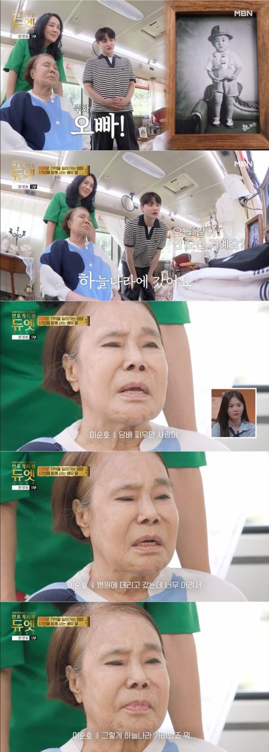 [OSEN=박근희 기자] '언포게터블 듀엣’ 배우 이주화의 어머니가 치매 증상 속에서 과거 어린 아들을 잃은 충격적인 사고사를 고백했다.