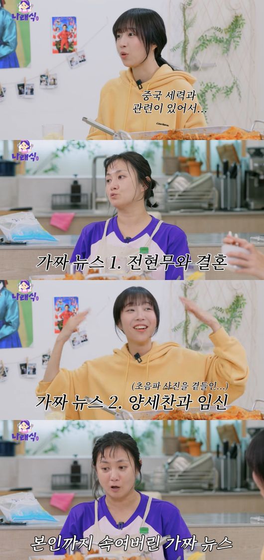 박나래 역시 “저도 수위가 워낙 센 게 많다”라며 전현무와 결혼설, 양세찬과 임신설 등을 가짜뉴스를 언급했다.