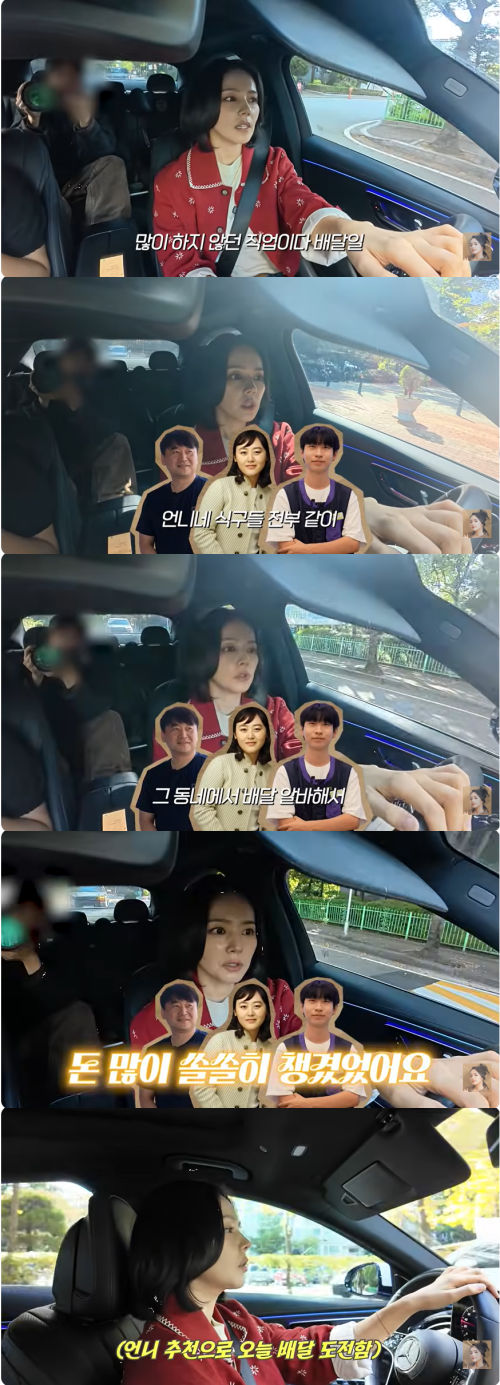 한가인은 "그때 그래서 코로나일 때 언니네 식구들 전부 같이 그 동네에서 배달 알바해서 돈 많이 쏠쏠히 챙겼었어요."라고 깜짝 고백했다. 이어 "재밌대요. 그래서 (언니가) 한 번 해봐 재밌어 그러더라고요"라며 언니의 적극적인 추천이 이번 배민 라이더 체험에 결정적인 영향을 미쳤음을 고백했다.