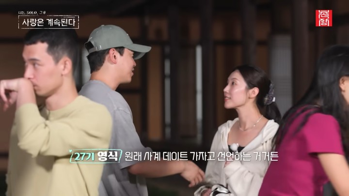 장미에게 관심이 있는 27기 영호, 용담에게 직진하기로 한 24기 영식은 ‘암묵적 동맹’을 맺고 여자 숙소로 갔다. 하지만 피곤했던 여성들은 일찌감치 잠들어 있었고, 27기 영호는 장미를 깨우려 했지만 24기 영식은 그를 말렸다.