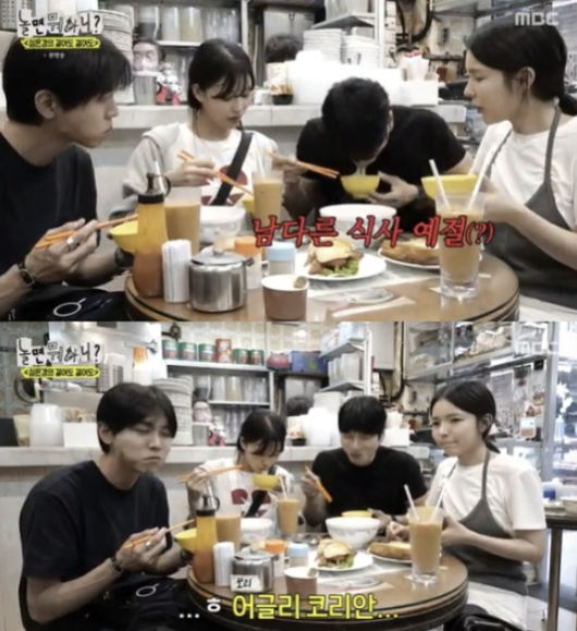 이 장면은 이후 ‘창고 大방출’ 편에서도 다시 소환됐다. 고객이 “국수를 그렇게 먹냐?”라며 SNS 화제였던 그 면치기를 다시 요구하자이이경은 “보여드려요?”라며 콩국수 업그레이드 버전 면치기쇼를 펼쳤다.콩물이 얼굴에 튀어 범벅이 되자 고객은 “참 수고한다, 수고해”라고 말하며 자리를 피했고,멤버들은 웃으면서도 민망해했다.