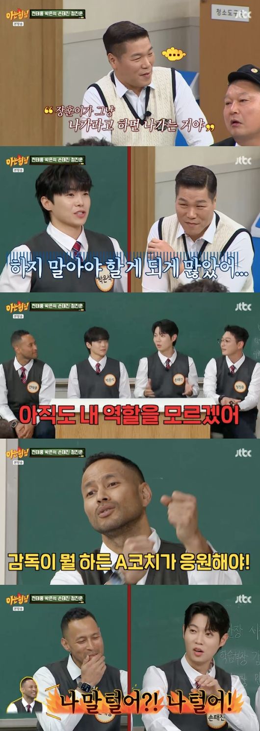 서장훈은 “선수 기용은 감독의 권한이다. 서로 의견을 교류하는 건 전 세계 어디든 있을 수 없다”라고 해명했다. 전태풍은 서장훈 앞에서 할 말을 다 할 것 같다는 말에 “감독이 뭘 하든 코치가 응원해 줘야 한다”라고 말했고, 손태진은 “‘나 오늘 예능캐로 갈 거야. 나 말 털어’ 하는데 장훈이 형이 오자마자 ‘다 들어가 있어’ 하면 말이 없어진다”라고 폭로했다.