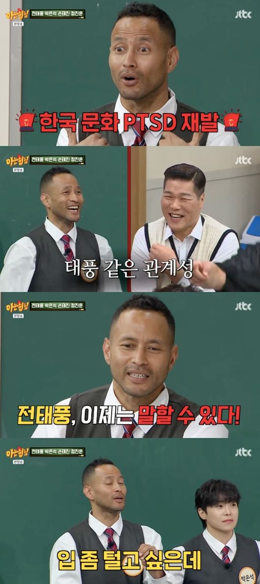 22일 방송된 JTBC ‘아는 형님’(이하 아형)에는 전 농구선수 전태풍, 배우 박은석, 가수 손태진, 정진운이 출연했다.