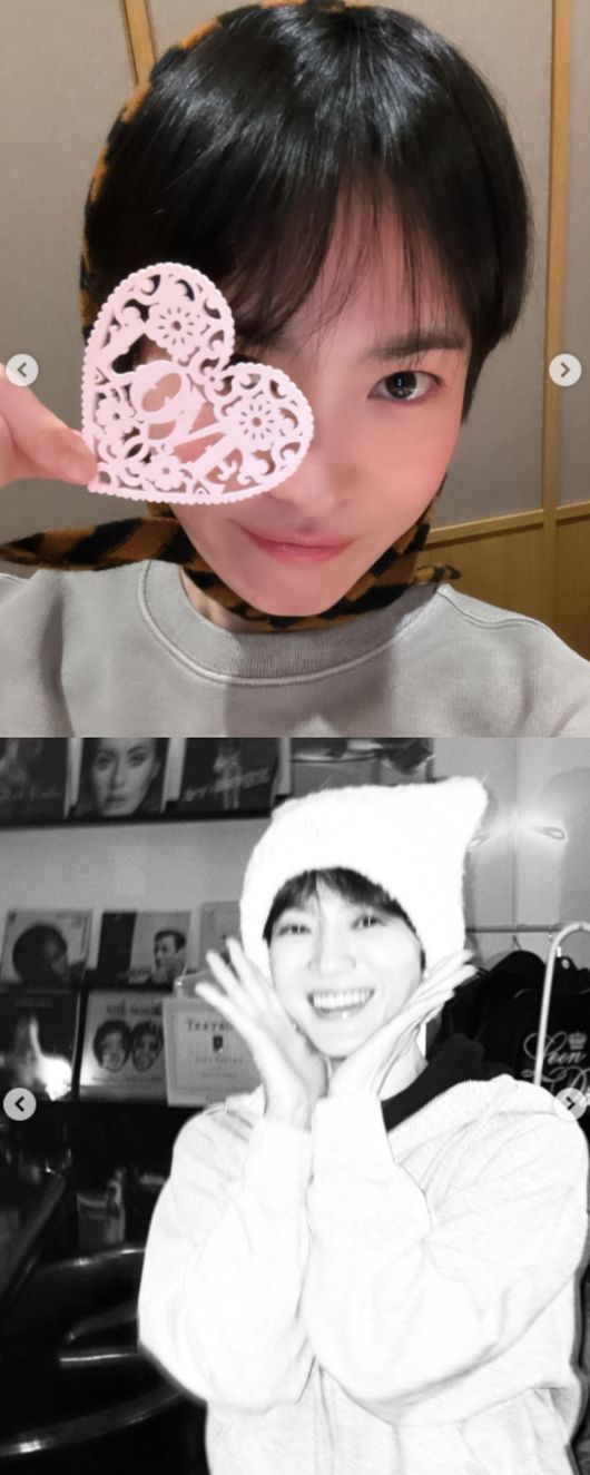 공개된 사진 속 송혜교는 맨투맨에 두건을 머리에 두르고 내추럴한 모습을 담아냈다. 생일 케이크를 들고서 포즈를 취한 그는 귀여운 매력을 물씬 풍겼다.