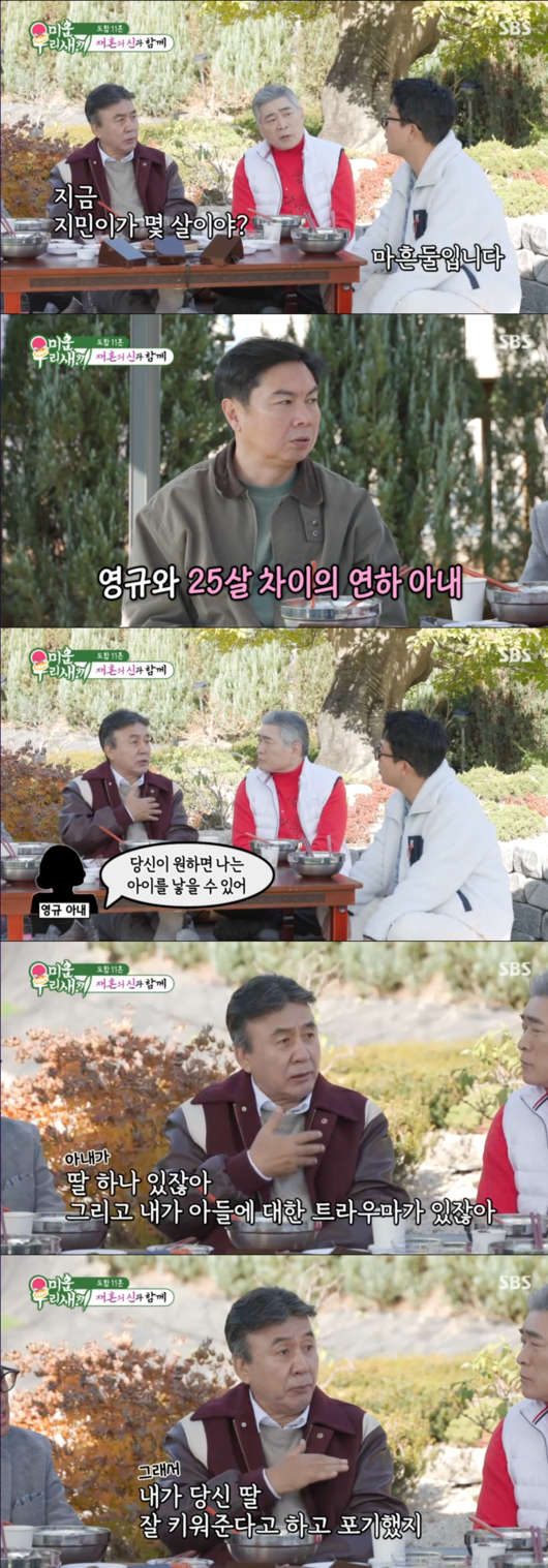 [OSEN=박근희 기자] '미운 우리 새끼’ 박영규가 현재의 아내와 2세 계획을 세우지 않기로 결정한 사연을 고백하며, 과거 아들을 잃었던 트라우마가 결정적인 영향을 미쳤음을 밝혔다.