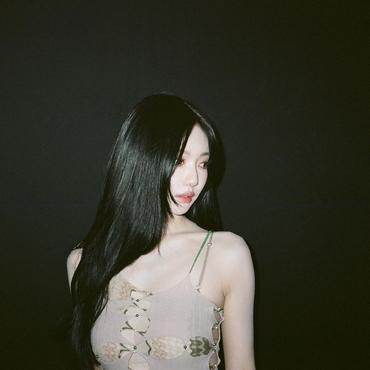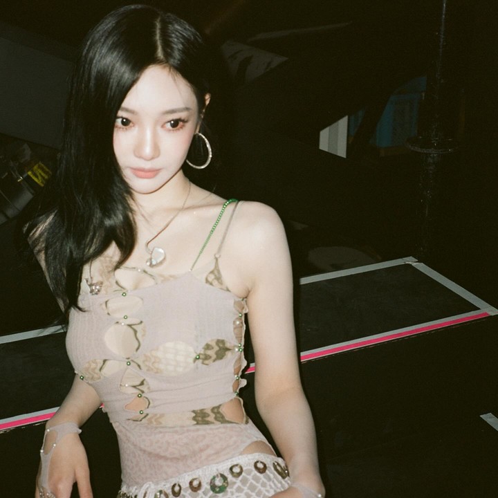 공개된 사진 속 닝닝은 누드 톤의 시스루 보디슈트에 풍성한 화이트 미니스커트를 매치해 마치 발레리나를 연상시키는 룩을 완성했다.