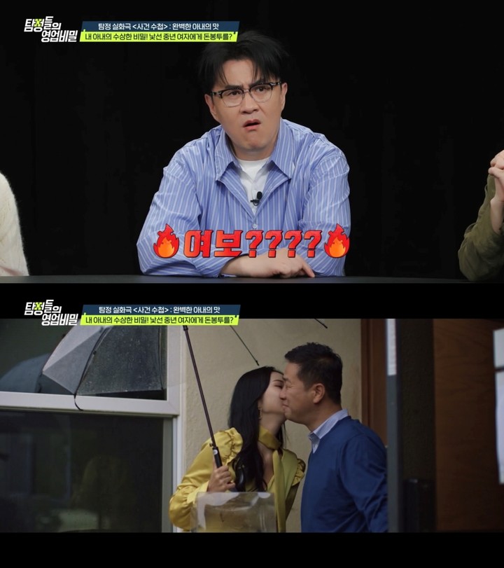 의뢰인 아내의 출장길을 추적한 탐정단은 그녀가 청담동의 한 숍에서 머리부터 발끝까지 꾸미고 나온 뒤, 한 중년 남성에게 "여보"라고 부르며 그의 집으로 들어가는 충격적인 장면을 목격했다.