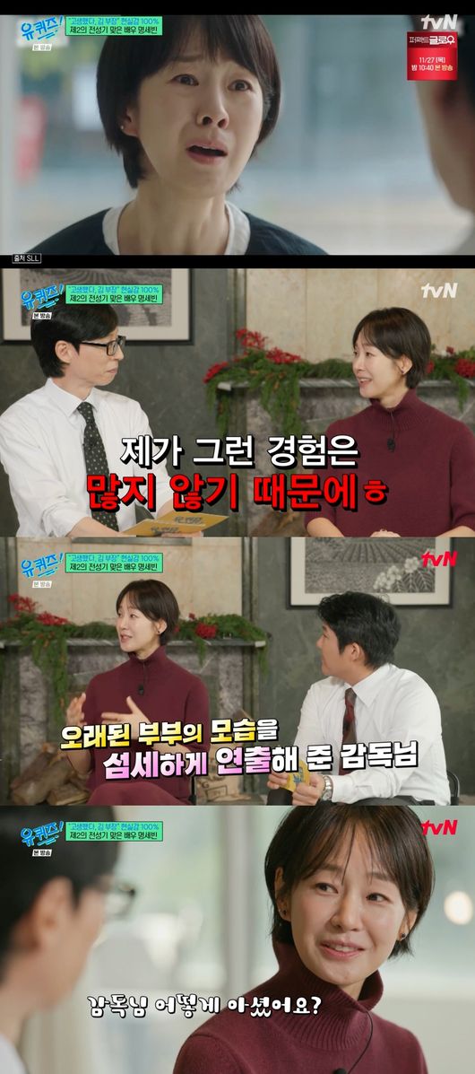 [OSEN=연휘선 기자] '유 퀴즈 온 더 블럭'에서 배우 명세빈이 이혼과 과거 생활고를 딛고 '김부장 이야기'로 제2의 전성기를 연 인생사를 고백했다.