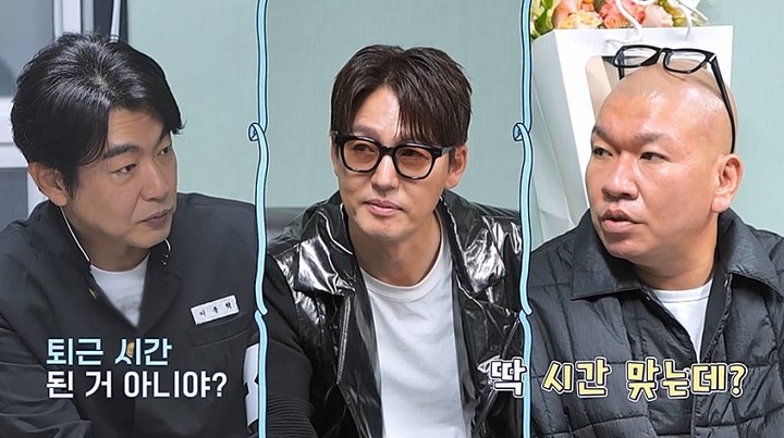 이정진이 예약한 식당에 도착한 이들은 푸짐한 음식을 나눠 먹으며 대화를 이어갔다. 이정진은 자신만 빼고 모두 ‘유부남’이라는 사실에 “각자 아내에게 X톡 보내서 가장 늦게 답이 오는 사람이 식사비 내는 거 어때?”라고 제안했다.
