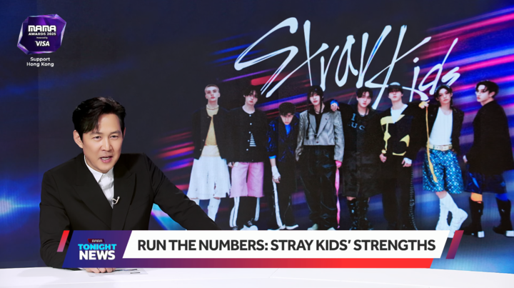 이날 이정재는 '마마 브레이킹 뉴스' 코너 속 뉴스를 전하는 앵커 콘셉트의 영상으로 등장했다. 그는 "K팝이 세계를 뒤흔들고 있다. K팝을 향한 폭발적인 응원, 상상을 초월한다. 잠시 후 역사상 최고의 K팝 챔피온이 탄생한다. 가장 유력한 후보로 언급되는 스트레이 키즈의 전략에 대해 분석해 보겠다"고 말했다.