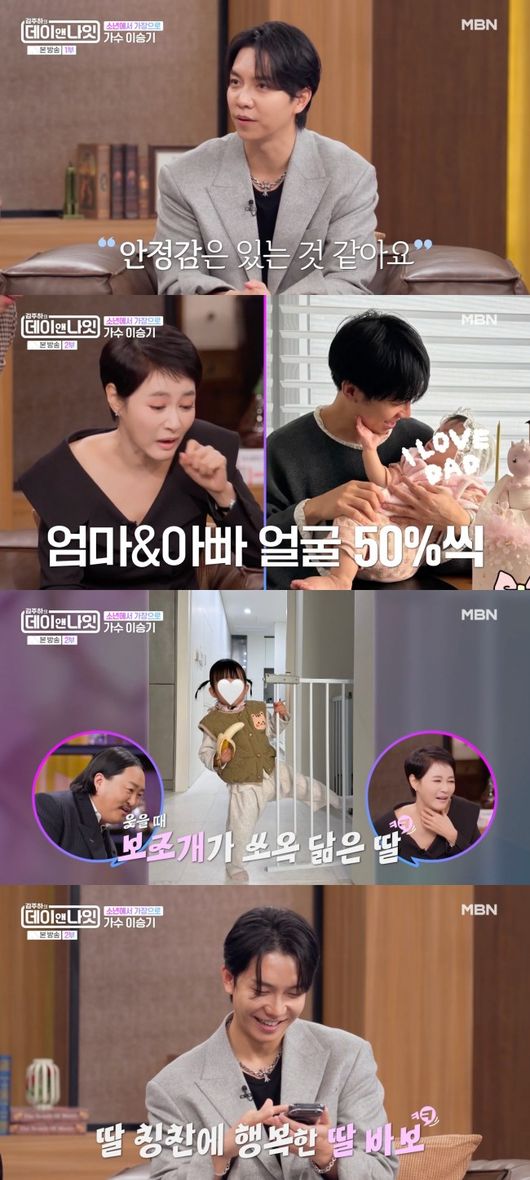이승기는 지난 29일 오후에 방송된 종합편성채널 MBN ‘김주하의 데이앤 나잇’에 출연해 결혼과 21개월 딸에 대해 언급했다. 딸의 얼굴을 최초 공개하며 ‘딸바보’의 면모를 드러내기도 했다.