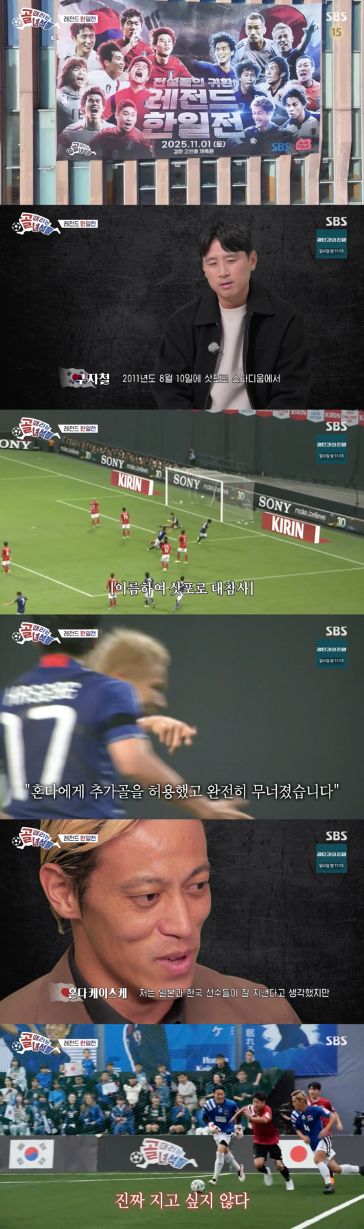 3일 오후 방송된 SBS ‘골 때리는 녀석들- 레전드 한일전’에서는 한국과 일본을 대표했던 레전드 선수들이 출연해 그라운드에서 맞붙었다. 해설로는 박지성과 나카타 히데토시가 등장했다.
