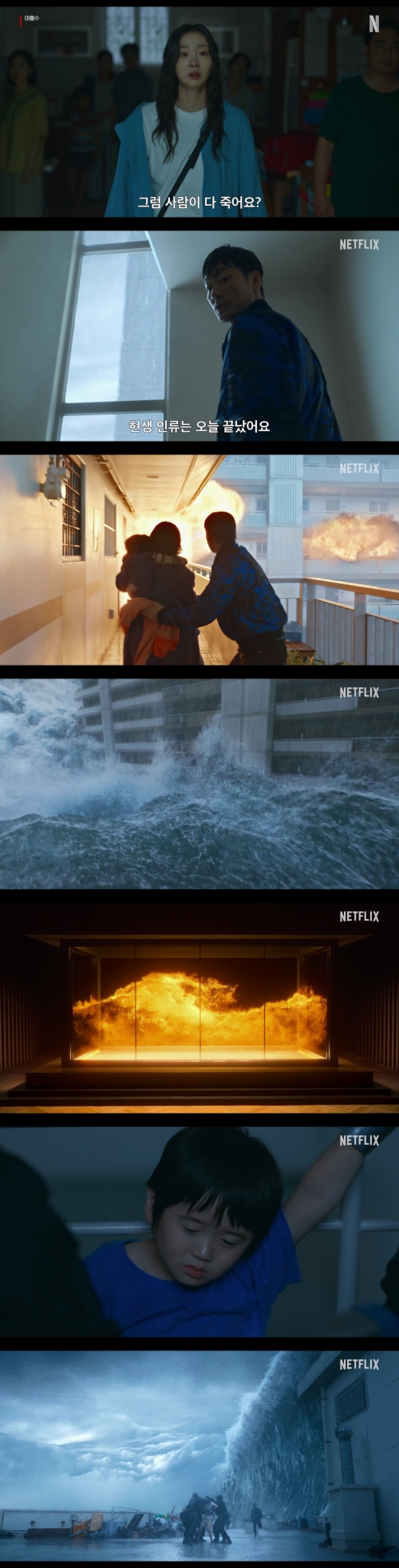 [OSEN=하수정 기자] 넷플릭스 영화 '대홍수'가 세상을 집어삼킨 ‘대홍수’를 마주한 인물들의 치열한 사투를 담은 메인 예고편을 공개했다.