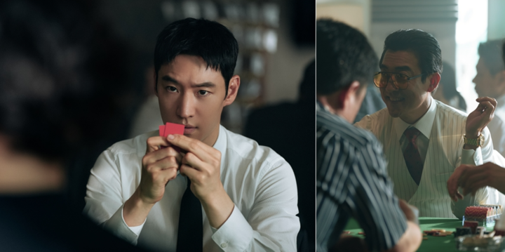 5일 SBS '모범택시3' 측은 5회 방송을 앞두고 도박판에 입성한 김도기(이제훈)와 최주임(장혁진)이 진중한 모습으로 도박판에 앉은 모습의 스틸을 공개했다.